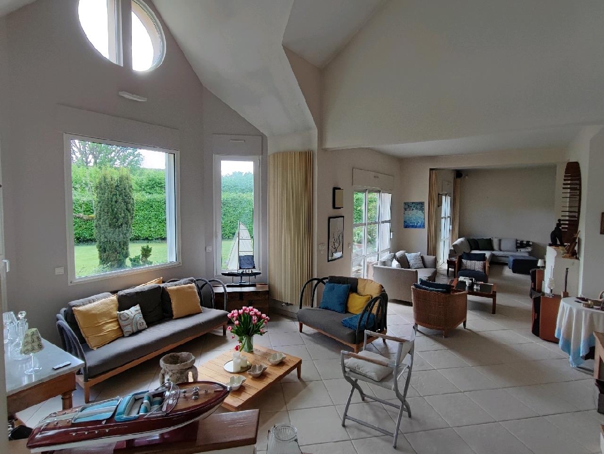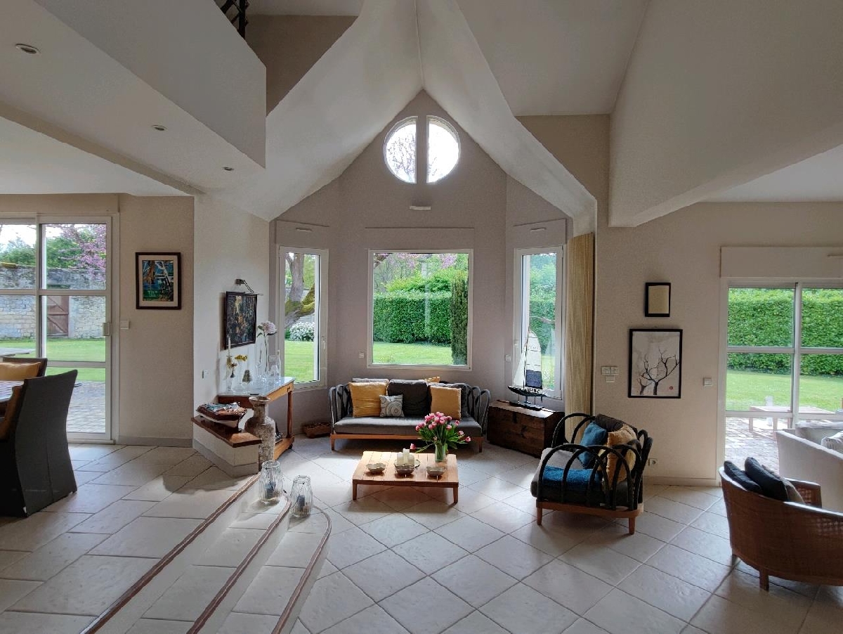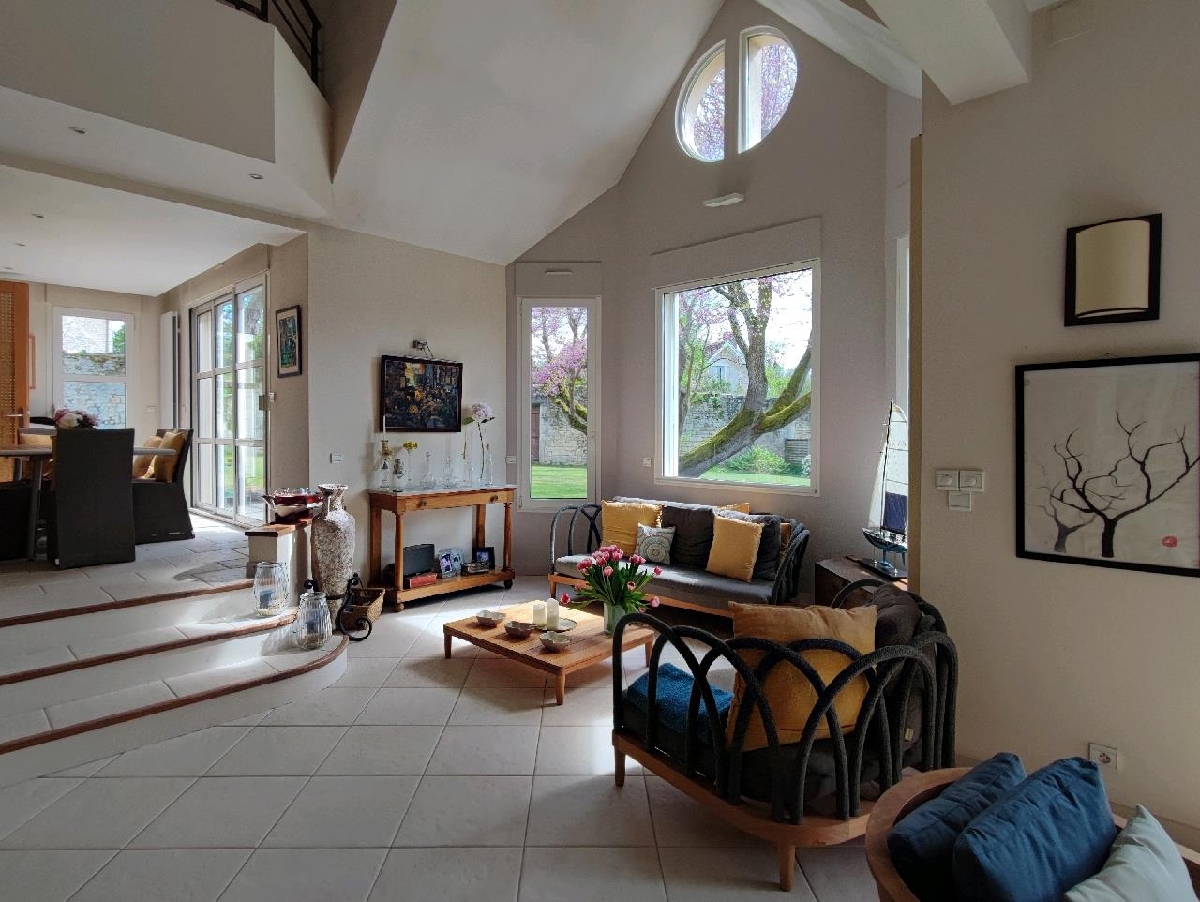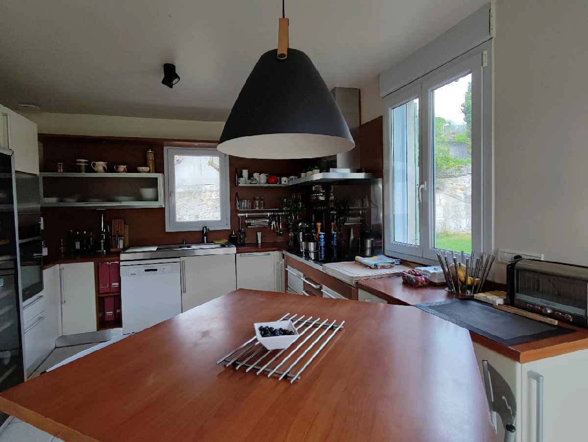 Belle maison d’architecte située en plein centre-ville, proche ttes commodités. Elle offre au rez-de-chaussée : Entrée avec toilettes, cuisine aménagée et équipée, cellier, salle à manger ouverte sur terrasse exposée Sud, salon avec cheminée, petit salon, salle de jeux, chambre avec salle deau. A létage, palier desservant trois chambres, buanderie, salle de bains/WC et une suite parentale (chambre, dressing, salle de bain, toilettes).